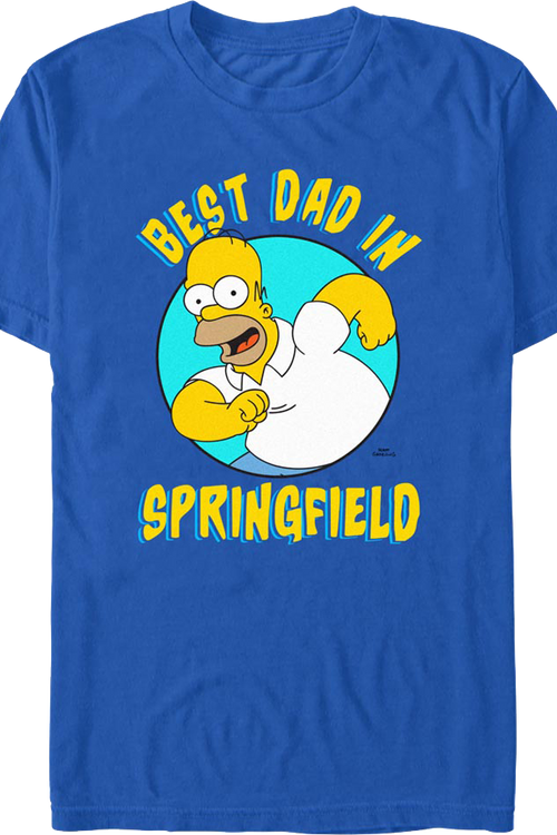 This Simpsons t-shirt features an image of Homer Simpson. The shirt reads Best Dad In Springfield.